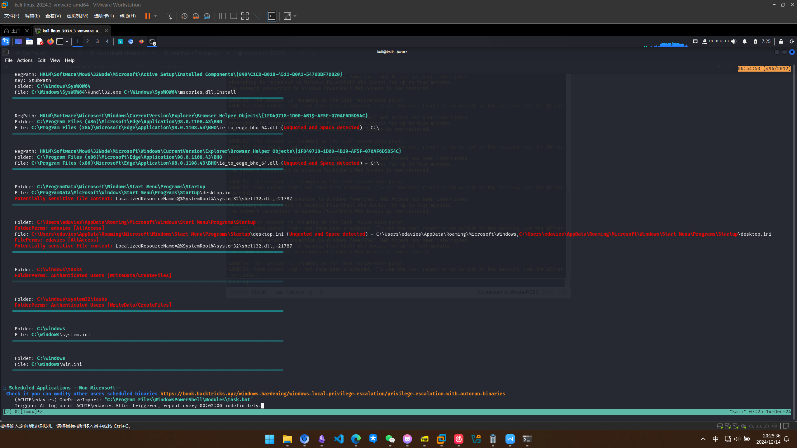 利用winpeas进行枚举,发现C:\windows\tasks可写,尝试添加恶意脚本进去但是失败了