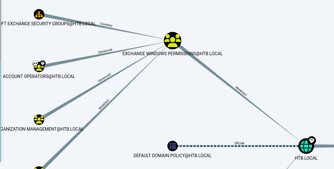 ACCOUNT OPERATORS对组EXCHANGE WINDOWS PERMISSIONS@HTB.LOCAL有GenericAll权限