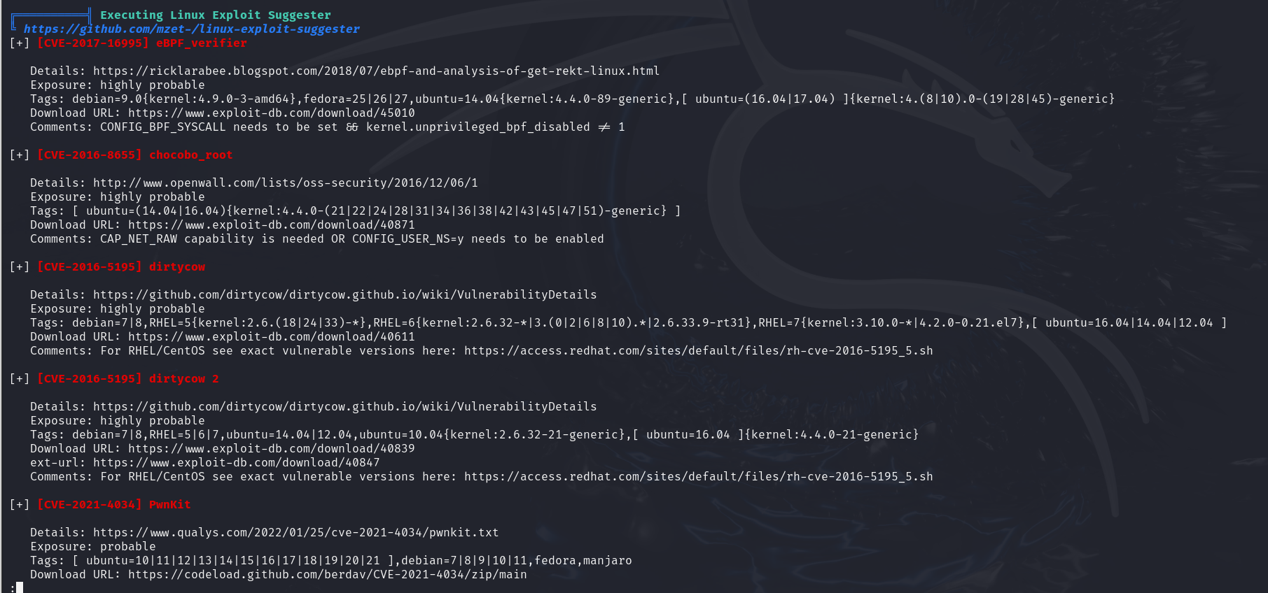 有数据库用户的凭据,但是没什么用 试一下内核提权吧