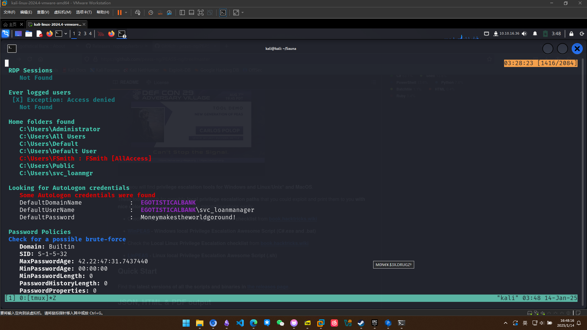 先使用winpeas扫描一下,扫描发现存在一个自动登录的用户