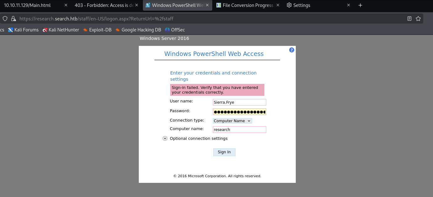 SMB 10.10.11.129 445 RESEARCH [+] search.htb\TRISTAN.DAVIES:Lizisec123@ (Pwn3d!)