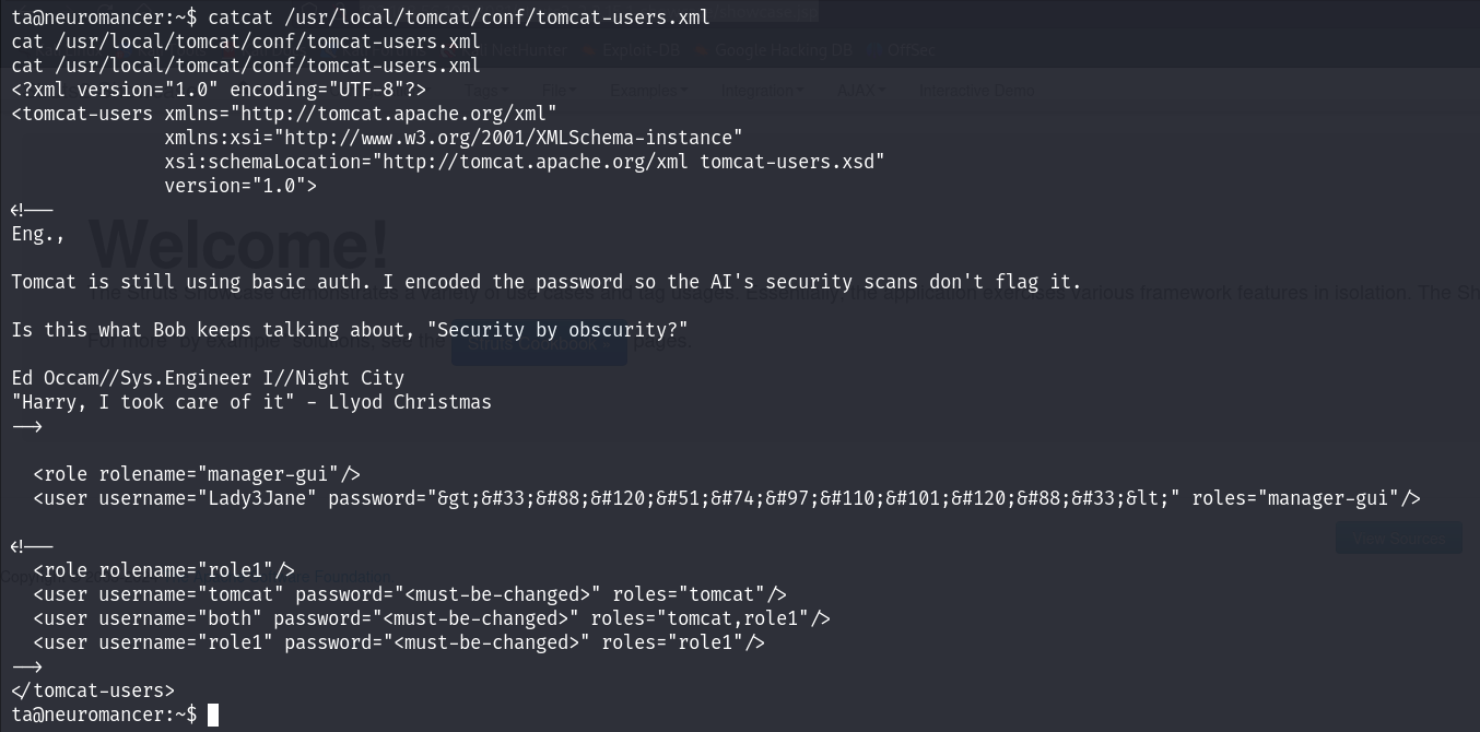 在tomcat-users.xml中找到登录凭据