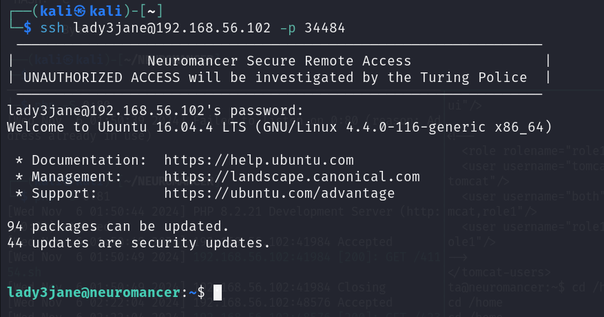 - You should not be able to ping Neuromancer from your Kali box. If you can, you are cheating.
